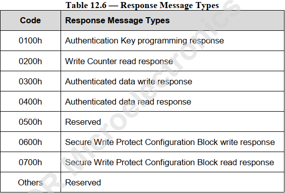 - 成功获取安全写保护配置块后,根据响应类型、nonce、地址、数据和结果计算MAC。如果MAC计算失败,则返回的结果为“Authentication failure”(0002h/0082h)。