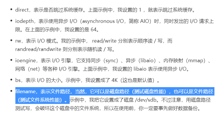 它提供了大量的可定制化选项,可以用来测试,裸盘或者文件系统在各种场景下的 I/O 性能,包括了不同块大小、不同 I/O 引擎以及是否使用缓存等场景。