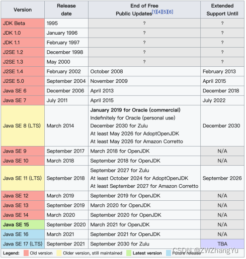 不过,主流的 JDK 8 在2019年01月之后就被宣布停止更新了。另外, JDK 11 及以后的版本也不再提供免费的长期支持(LTS),而且 JDK 15 和 JDK 16 也不是一个长期支持的版本,最新的 JDK 15 只支持 6 个月时间,到 2021 年 3 月,所以千万不要把 JDK 15 等非长期支持版本用在生产。