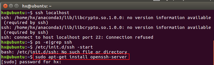 Ubuntu下测试ssh时使用ssh localhost 命令,出现错误提示connect to host localhost port 22:Connection refused,如下图所示: