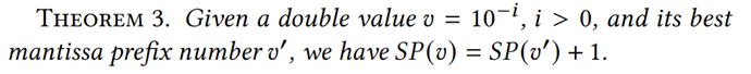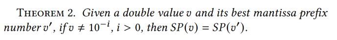 ,我们可以找到它的一个尾数前缀v’和一个很小的双精度值δ,0≤δ<10α,使得v’=v−δ。如果保留v’和δ的信息,可以不损失任何精度地恢复v。