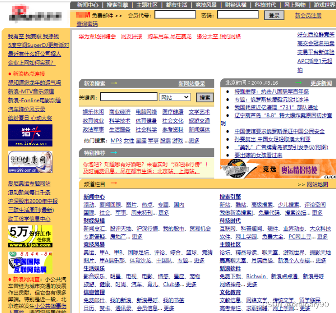 早起互联网的前端,指的是pc网页的开发,这类前端,只有简单的图片和文字的呈现(如图);这显然不能满足人们日益增长的需求;因此这就需要前端开发能呈现出,内容丰富、功能强大、用户体验增强呈现效果。