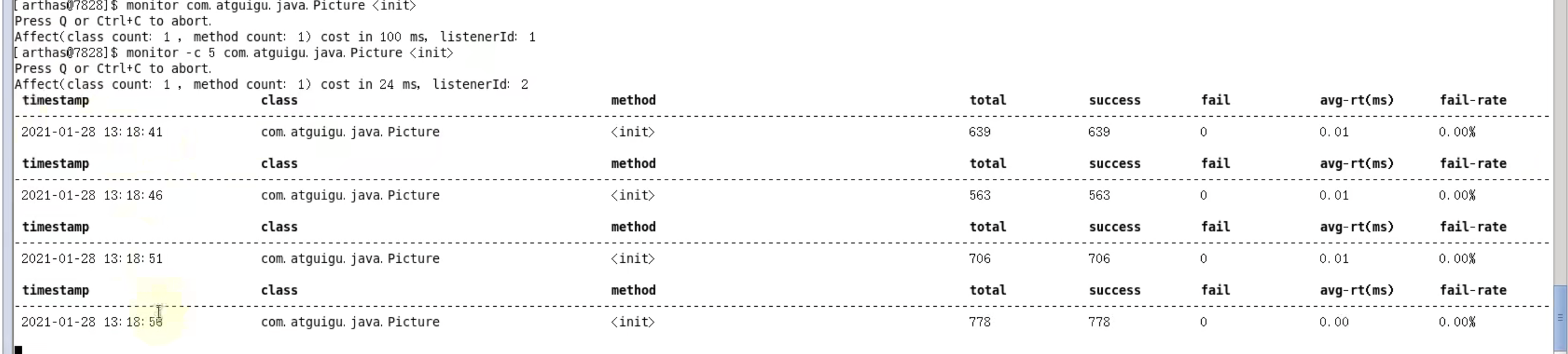 - reset:重置增强类,arthas增强过类全部还原,关闭时候也会重置