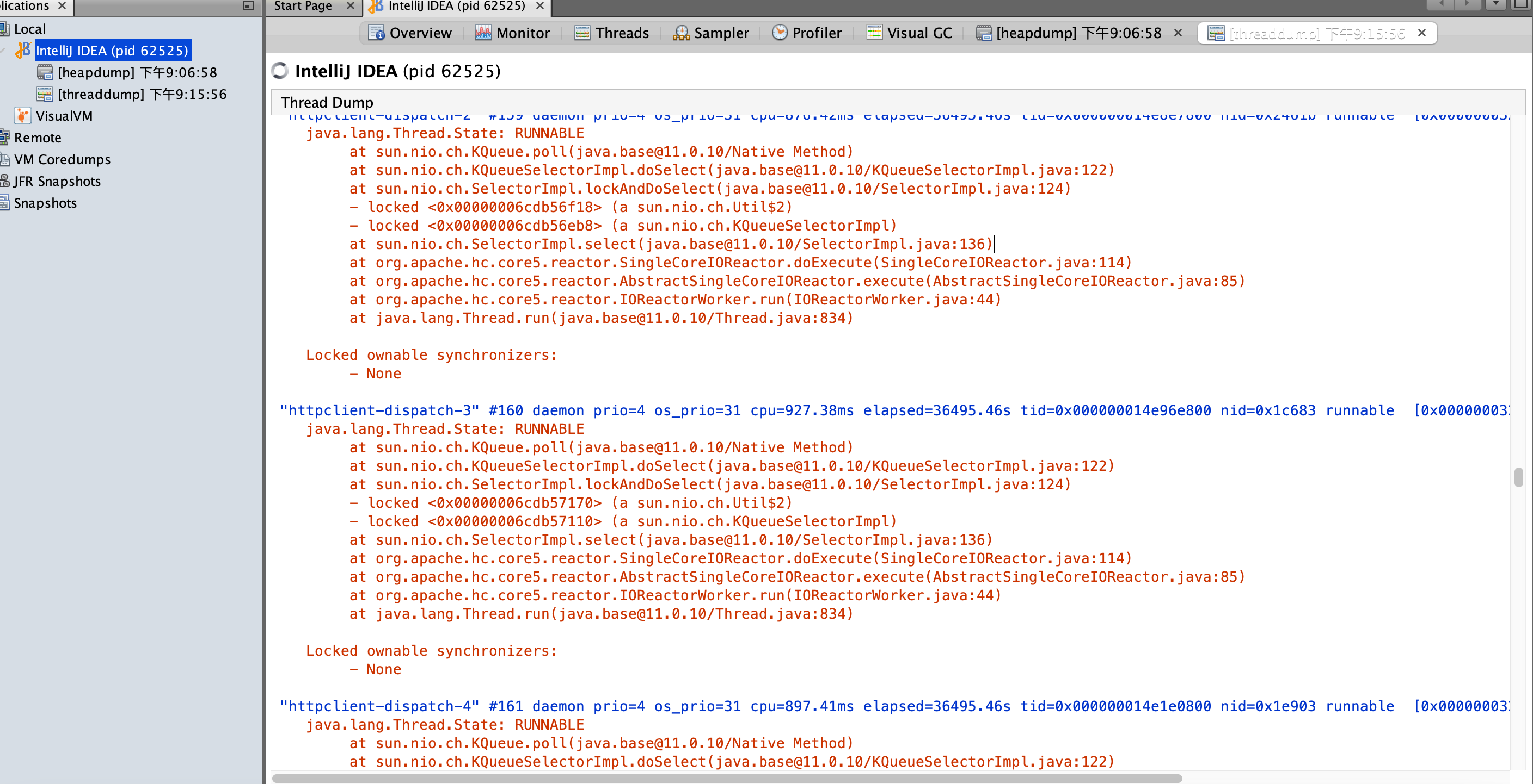 - 线程转出:显示有所线程的堆栈信息(Thread dump)