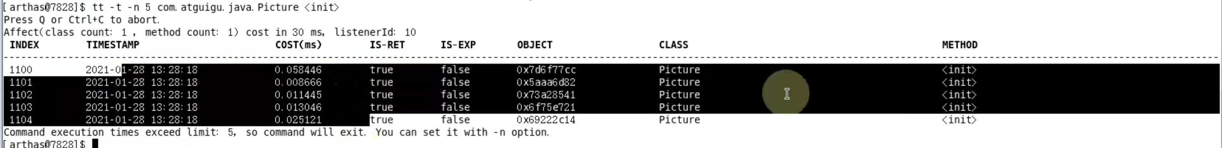- stop:关闭arthas服务器,所有客户端都退出