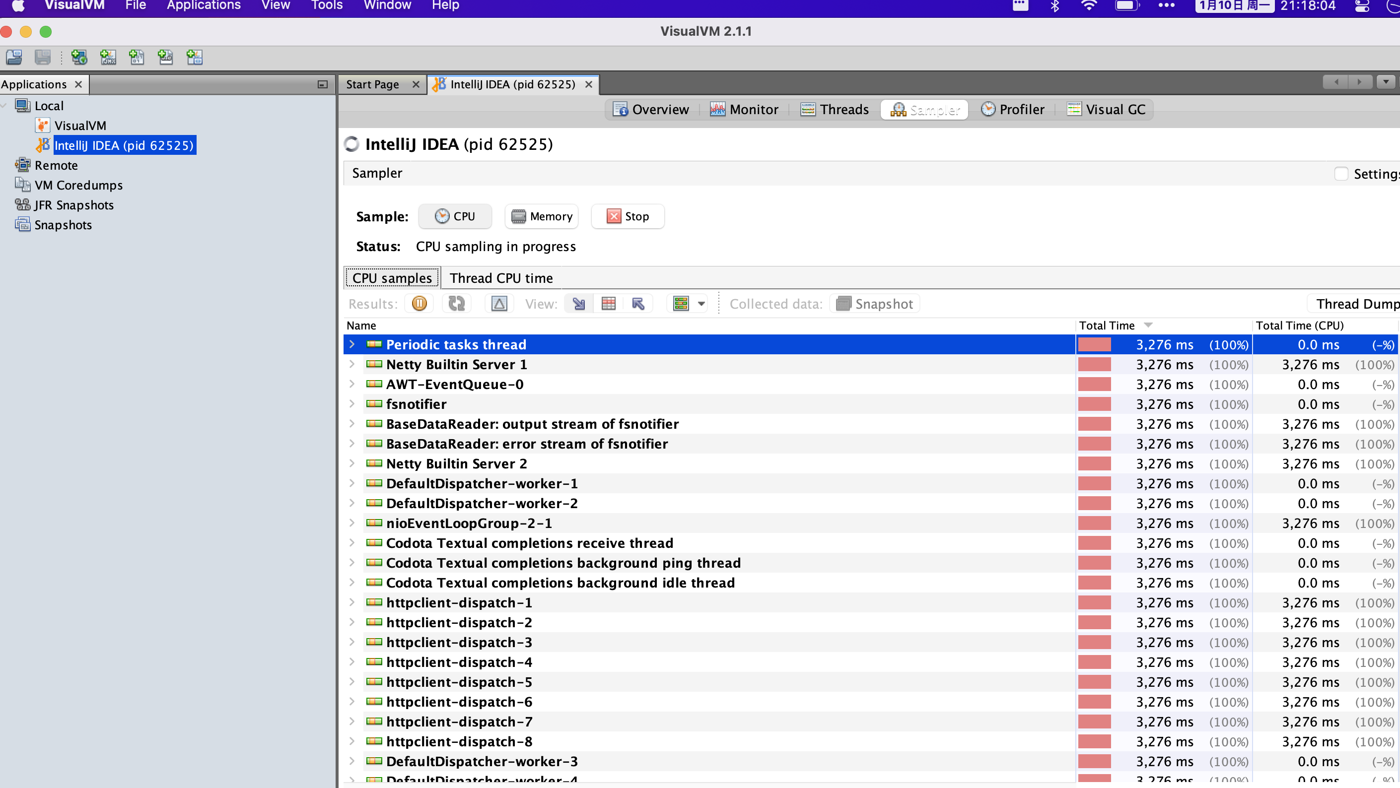 - 抽样模式(Sampling):不能提供全部的功能,但是CPU消耗小、对应用影响小