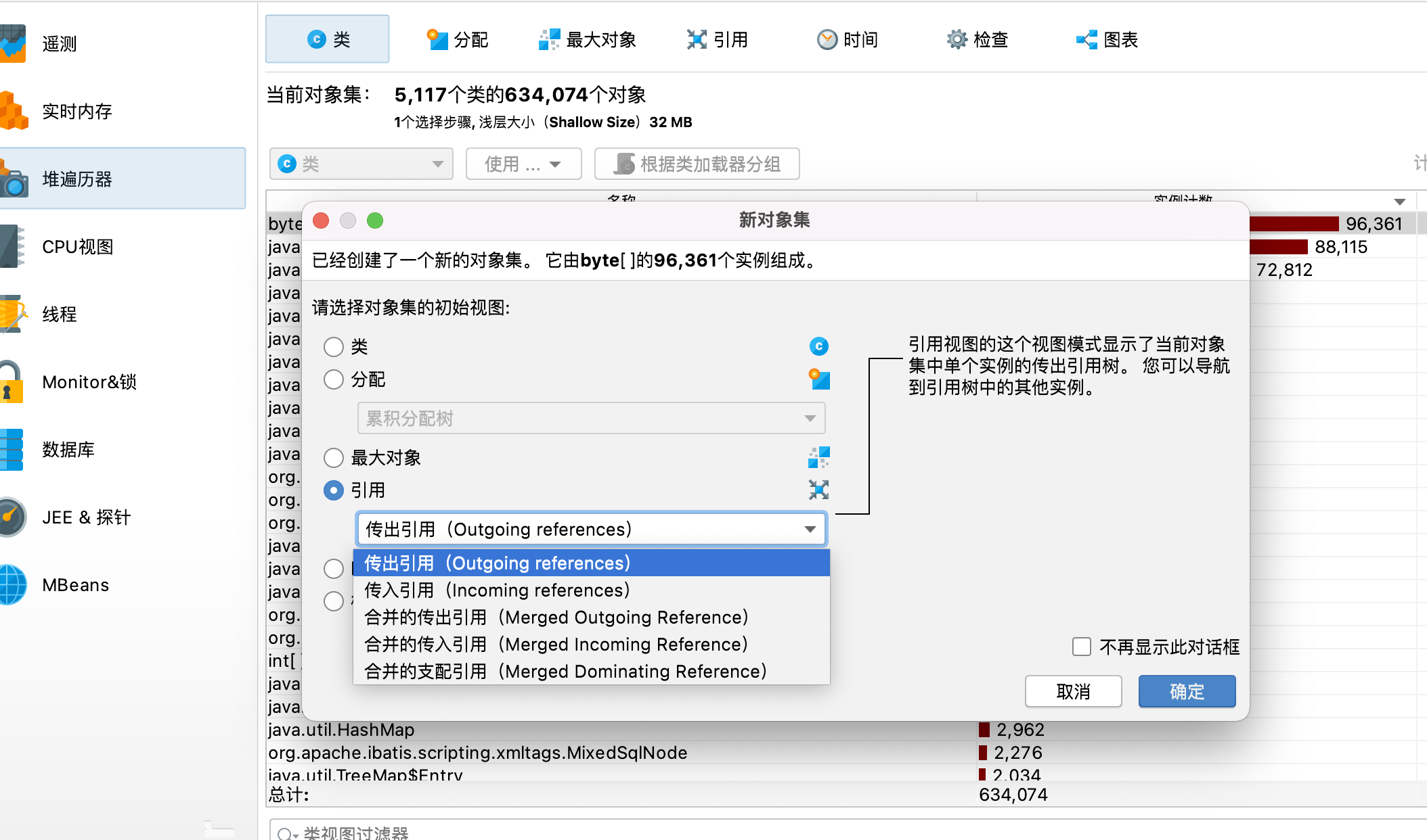- 存在内存泄漏的问题:每次垃圾就回收之后,都有内存没有被回收,并且逐步增加,这个时候可以开启记录对象
