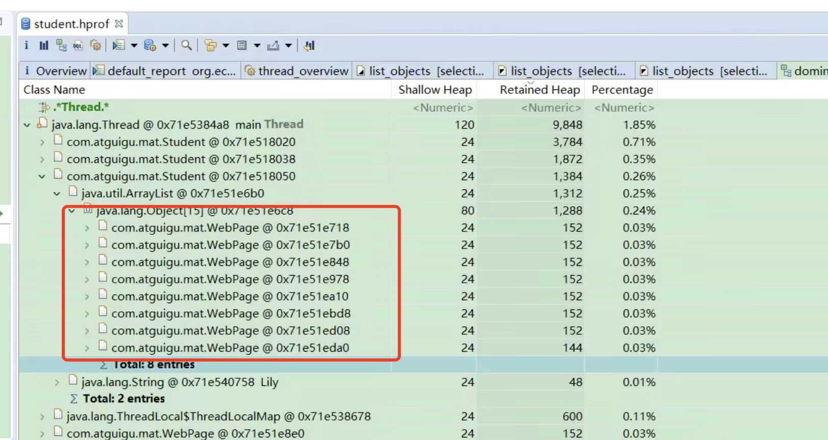 分析:内存中对象情况