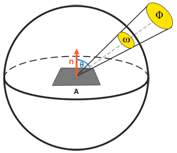 其中[Math Processing Error]I表示辐射通量[Math Processing Error]Φ除以立体角[Math Processing Error]ω。