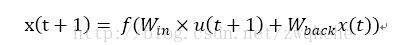 式中,Win和Wback都是在最初建立网络的时候随机初始化的,并且固定不变。u(t+1)是这个时刻的输入,x(t+1)是这个时刻的储备池状态,x(t)是