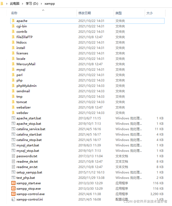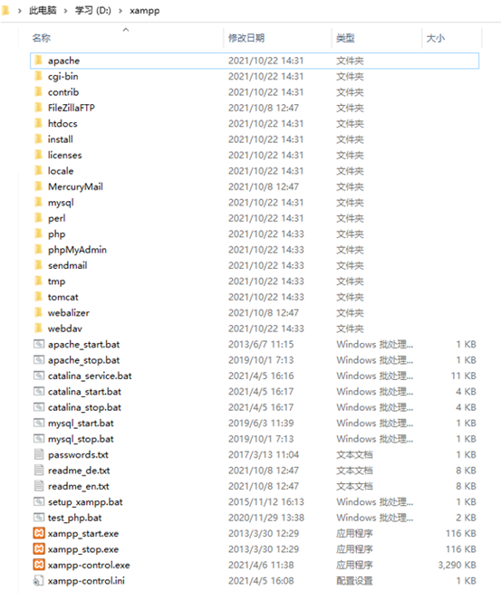打开你存放XAMPP的路径:我这里的是:D:\xampp,显示如下图: