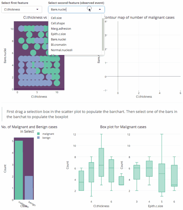 Dash的图形元素与开源的plotly.py库共享同样的语法,开发者可以轻易地在两者之间切换。Dash的图形组件从plotly.js事件系统中钩取信息,允许开发者编写响应在Plotly图形中悬停、点击、选点等操作的应用。