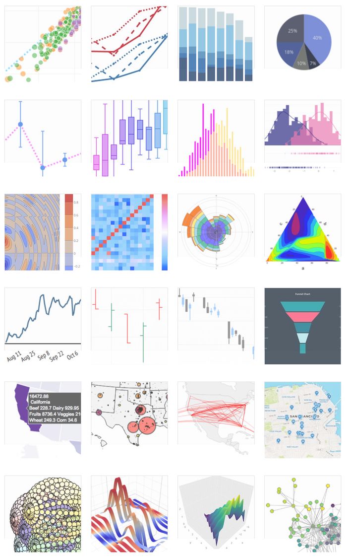 Plotly.js图形组件支持的一些视图类型,更多内容请见plotly.py文档
