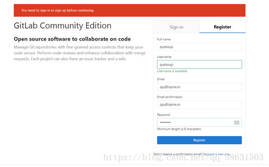2. 登陆公司git服务器,进行账户注册