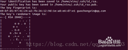 这里按“回车”键确认生成的钥匙对保存在默认地址,接下来会提示如下:
