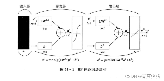 对一定的样本数据(输入与期望输出)进行学习,即样本的输入送至网络输入层的各个神经元,经过隐层的和输出层的计算后输出,输出层的各个神经元输出对应的预测值。若预测值与期望值之间的误差不满足精度的要求,则从输出层反向传播该误差,从而进行权值和阈值的调整,是的神经网络的预期输出与期望输出之间的误差逐渐减小,直到满足精度要求(MATLAB智能算法30个案例分析(第2版),郁磊,史峰,王辉,胡斐,第25章,基于神经网络的回归拟合)