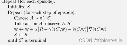 用上个状态的估值和下个状态的估值加参数加奖励的差值来更新参数。