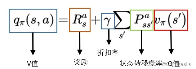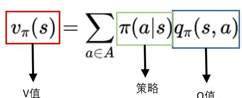 这里需要用到策略,即在某个状态时选择动作的概率用V值算Q值: