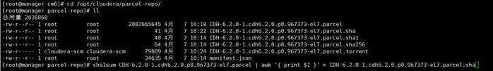 sha1sum CDH-6.2.0-1.cdh6.2.0.p0.967373-el7.parcel | awk ‘{ print $1 }’ > CDH-6.2.0-1.cdh6.2.0.p0.967373-el7.parcel.sha