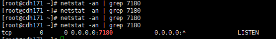 我在刚启动服务后7180没有启动,没找到什么原因,后来 晾了它一晚上,第二天一查端口,居然启动了,可能是cm服务要启动的东西太多,主机一时没启动。