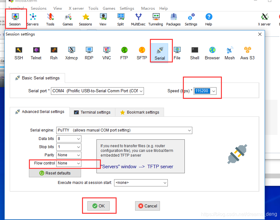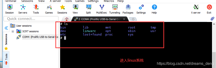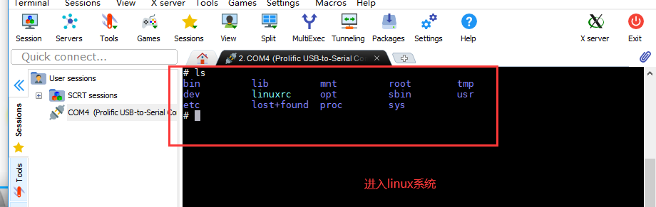 3. windows下载串口连接软件 MobaXterm,连接串口,进入linux