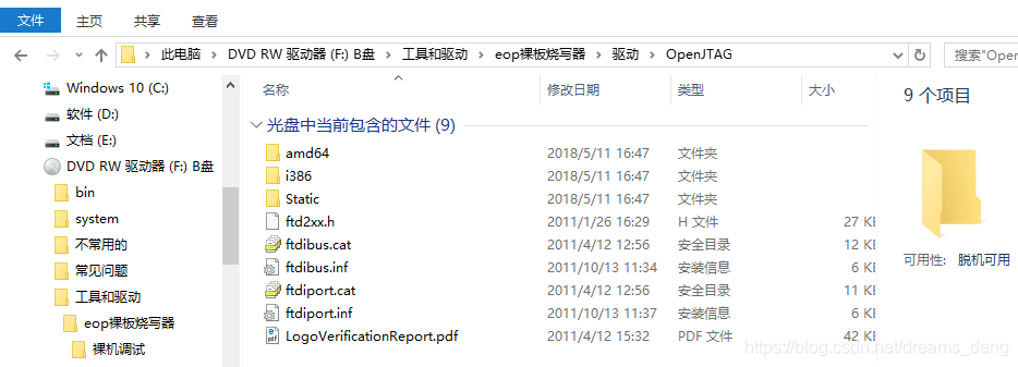 选择 D:\softpackage\weidongshagn\OpenJTAG 安装,需要安装 3 次 ,安装成功如下图