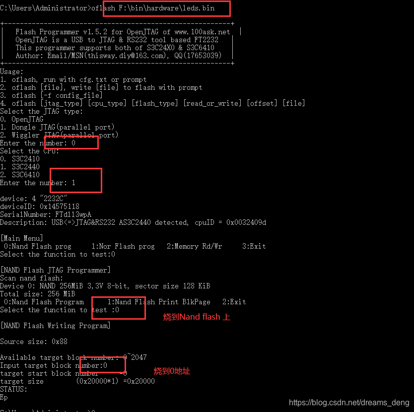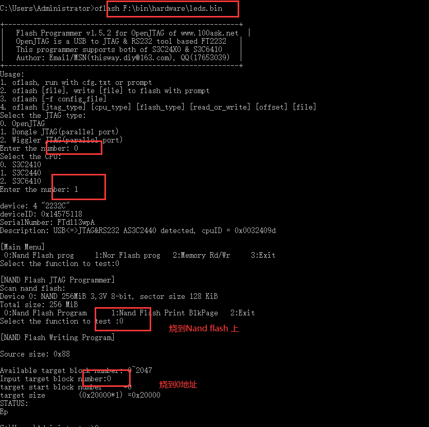 烧裸板程序 leds.bin 到 NandFlash