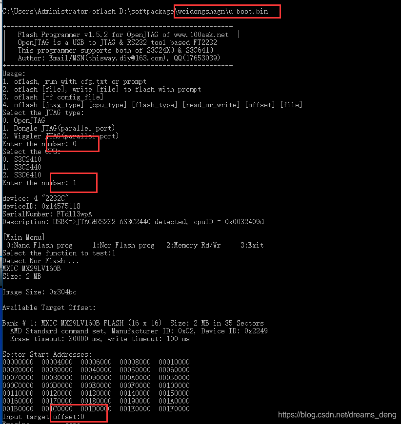 运行oflash 命令