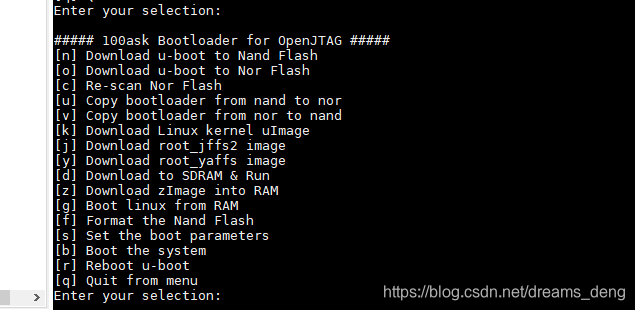 3. 在串口 工具输入 [n] Download u-boot to Nand Flash n 、 下载程序到Nand Flash