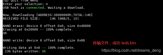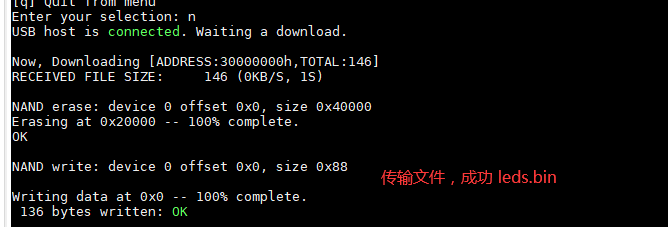 usb device 使用, 烧写 leds.bin 到 Nand Flash