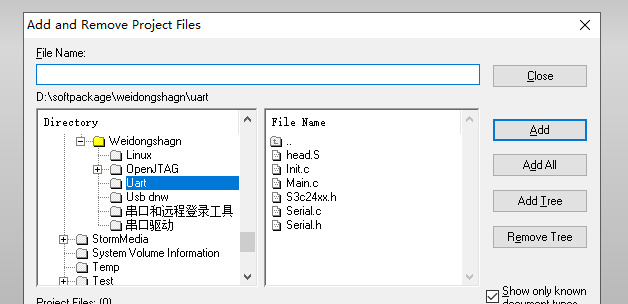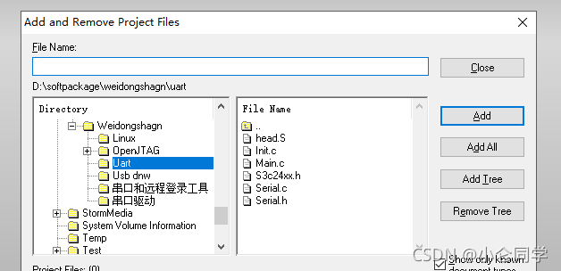 然后进行 : Add and Remove Project Files 可以添加新文件,删除导入 的文件