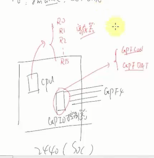 GPIO 寄存器 , 有 GPFCON (配置寄存器) GPFDAT (控制寄存器) , 以地址访问