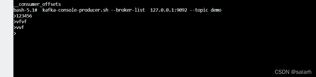 kafka-console-producer.sh --broker-list 127.0.0.1:9092 --topic demo