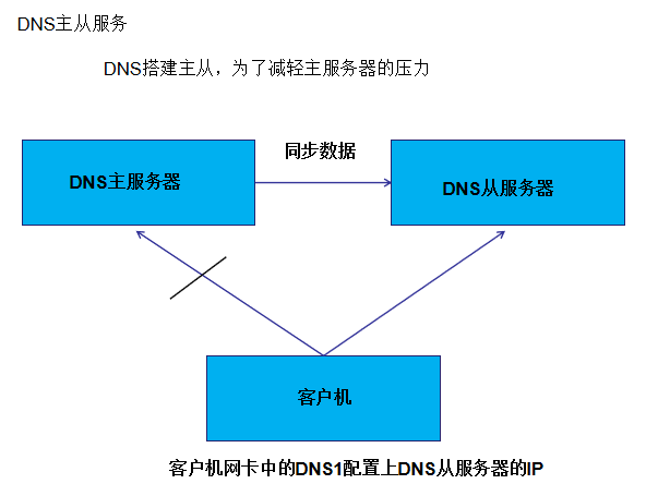 测试机# 安装解析工具nslookup$ yum -y install bind-utils# 修改网卡配置,添加DNS1=从服务器IP$ vim /etc/sysconfig/network-scripts/ifcfg-ens33DNS1 = 从dns服务器ip$ nslookup 要解析的域名