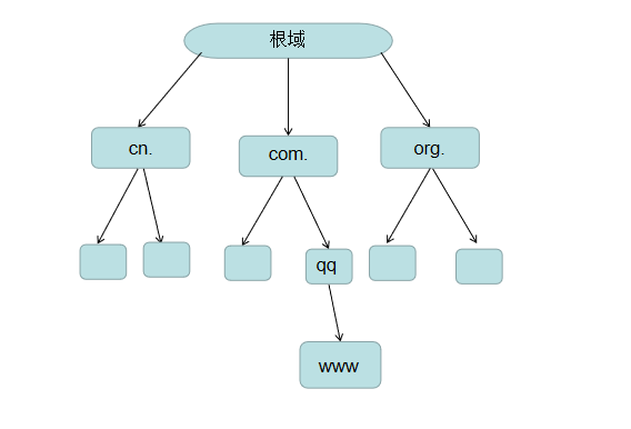 我们假设将全球的网络资源都放到一个总的虚拟的域之下,这个总域我们称为根域即.域(点域)。在根域之下,划分为多个二级域,这些域被称为顶级域,顶级域是不允许企业或个人直接申请的,顶级域是由全球的网络维护商按照国家、地区、行业等分配的,如:.cn.表示中国地区,.hk.表示香港,.org.表示国际组织,.com.表示工商企业的,.net.表示网络提供商等等。因为所有域都在根域(即.域)之下,所以,一般书写时我们可以把最后的.省略,如:.com .cn等 作为企业或个人,只可以在顶级域下申请子域,申请到子域后即可在子域下指定自己的网络层次了。如下图: