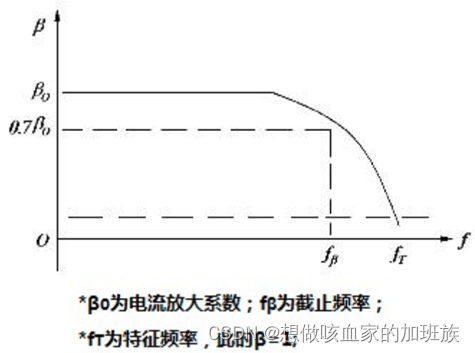 三极管的特征频率fT也称作增益带宽积,即fT=βfo,也就是说,如果已知当前三极管的工作频率fo以及高频电流放大倍数,就可算出特征频率fT。随着工作频率的升高,放大倍数会下降,fT也可以定义为β=1时的频率。一般在工程设计中要求三极管的fT大于3倍的实际工作频率。