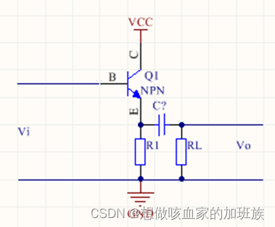 下图为一个典型的共集放大电路的原理图,放大倍数为:A=1;输入阻抗:Zin=β*R1;输出阻抗:Zout=R1/β,所以输出阻抗低;频率特性:共集放大电路不存在密勒效应,所以频率特性非常好。