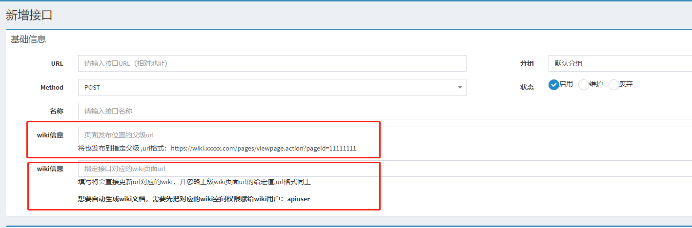 则接受指定父级wiki地址(接口wiki会自动发布成为这个URL的子页面)或 当前API对应的wiki地址(接口wiki会自动更新的地址对应的页面)