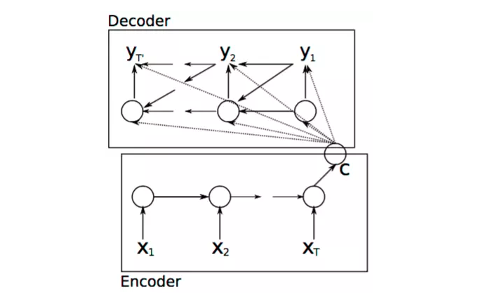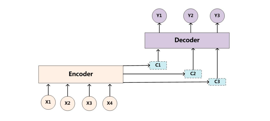 Encoder:编码器,对于输入的序列<x1,x2,x3…xn>进行编码,使其转化为一个语义编码C,这个C中就储存了序列<x1,x2,x3…xn>的信息。