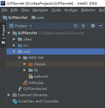 4.在web的WEB-INF的目录下创建classes和lib目录
