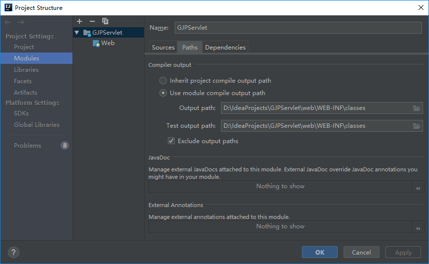 5.将classes目录作为输出目录(为啥这样我也不知道,由技术贴这样说的,知道的下面留言告知我,谢谢!)