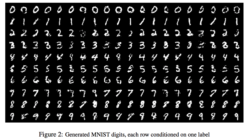 - MNIST图片数据集中,条件是one-hot形式的图片标签,即 数字1 用 [0,1,0,0,0,0,0,0,0,0] 来表示