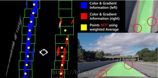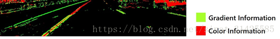 补充:作者说,直接对颜色信息和梯度信息叠加,会出现检测结果漂移,因为梯度信息存在裂缝状态,导致融合后,检测得到车道线结果偏离了真实位置: