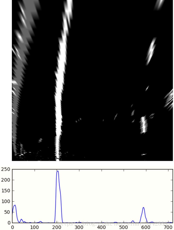 3)将两种信息直接叠加组合起来,就是最终的车道线对应像素所在位置: