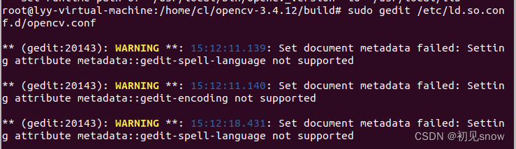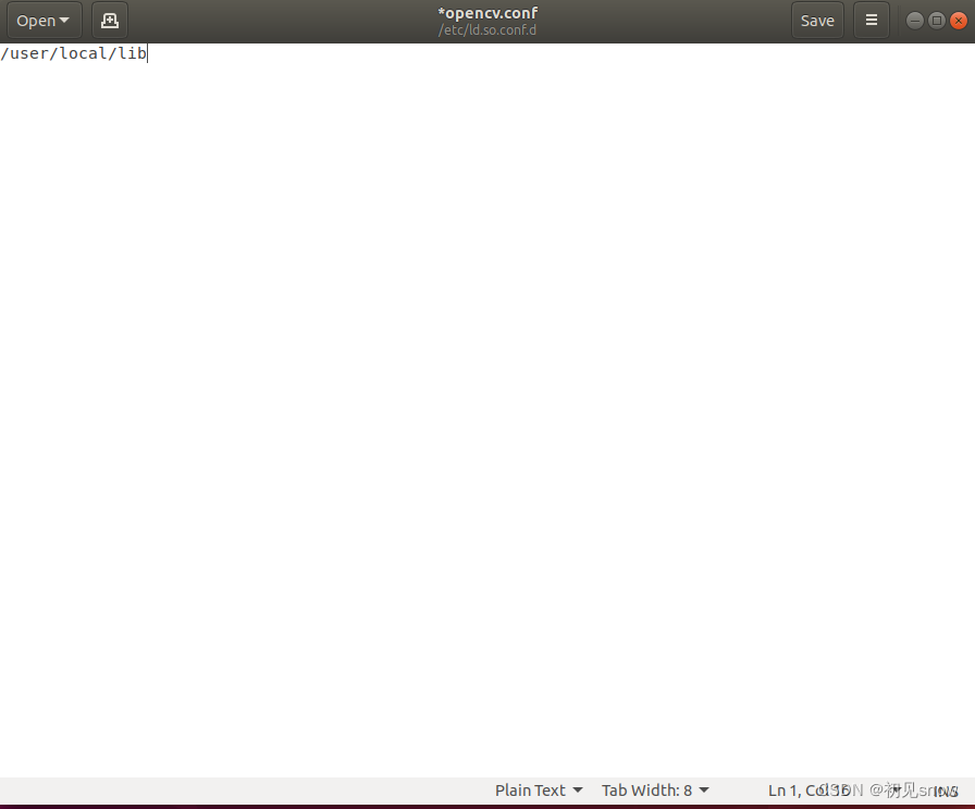 输入命令:sudo gedit /etc/ld.so.conf.d/opencv.conf