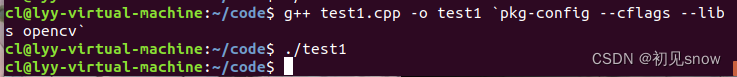 c++文件编译指令:g++ test1.cpp -o test1 `pkg-config --cflags --libs opencv`