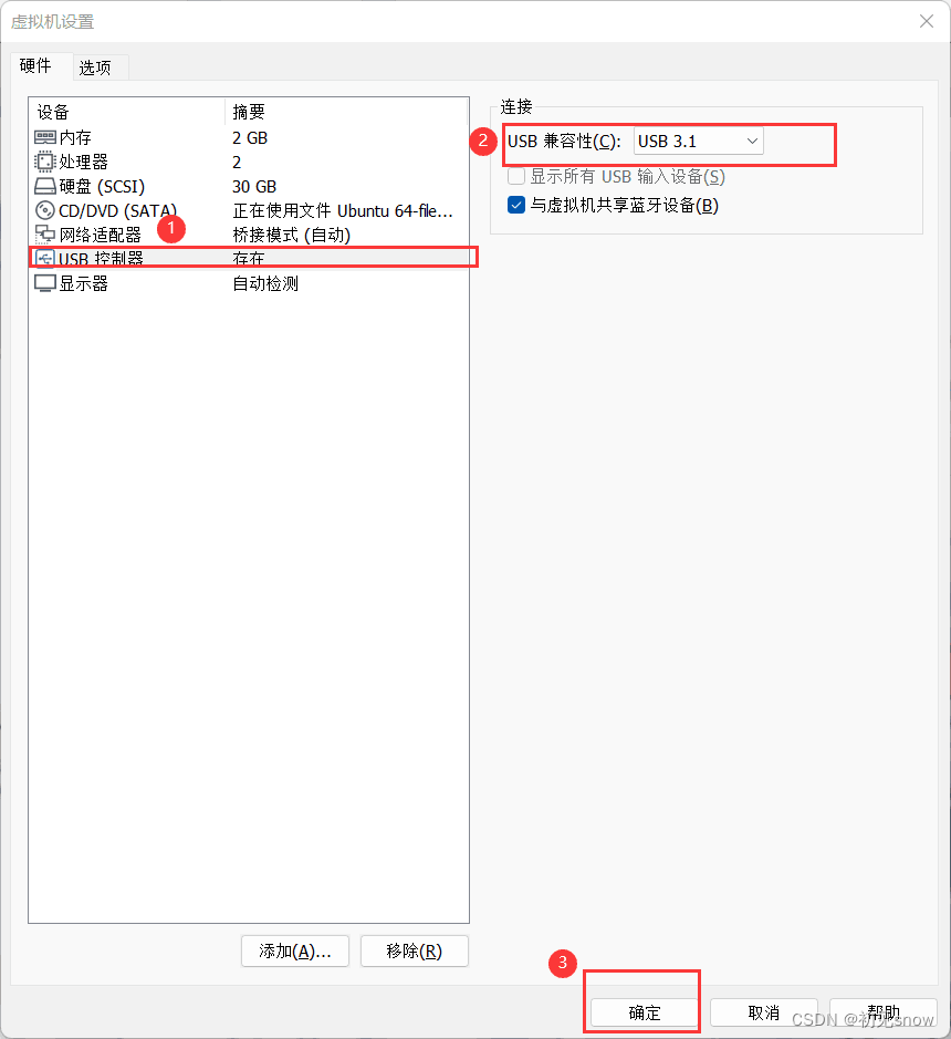 选择 “ USB控制器 ” ,将 “ USB兼容性 ” 设置为 “ USB 3.1 ” ,并点击确定。