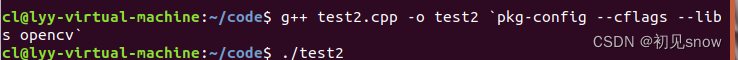 输入命令:g++ test2.cpp -o test2 `pkg-config --cflags --libs opencv`