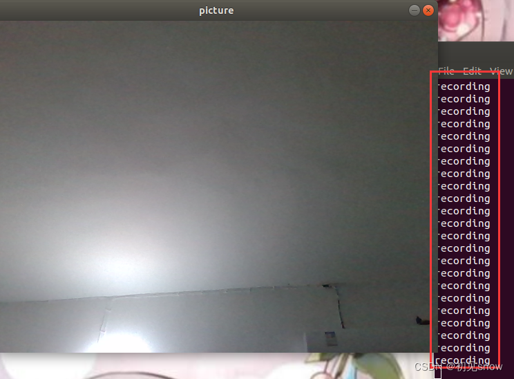 {//打开电脑摄像头VideoCapture cap(0);if (!cap.isOpened()){cout << "error" << endl;waitKey(0);return 0;}//获得cap的分辨率int w = static_cast<int>(cap.get(CV_CAP_PROP_FRAME_WIDTH));int h = static_cast<int>(cap.get(CV_CAP_PROP_FRAME_HEIGHT));Size videoSize(w, h);VideoWriter writer("RecordVideo.avi", CV_FOURCC('M', 'J', 'P', 'G'), 25, videoSize);Mat frame;int key;//记录键盘按键char startOrStop = 1;//0 开始录制视频; 1 结束录制视频char flag = 0;//正在录制标志 0-不在录制; 1-正在录制while (1){cap >> frame;key = waitKey(100);if (key == 32)//按下空格开始录制、暂停录制 可以来回切换{startOrStop = 1 - startOrStop;if (startOrStop == 0){flag = 1;}}if (key == 27)//按下ESC退出整个程序,保存视频文件到磁盘{break;}if (startOrStop == 0 && flag==1){writer << frame;cout << "recording" << endl;}else if (startOrStop == 1){flag = 0;cout << "end recording" << endl;}imshow("picture", frame);}cap.release();writer.release();destroyAllWindows();return 0;
