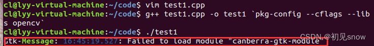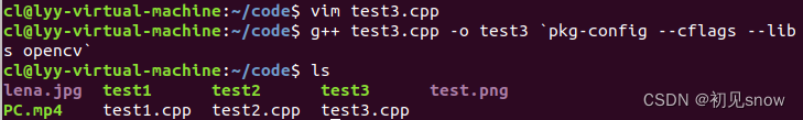 输入命令:g++ test3.cpp -o test3 `pkg-config --cflags --libs opencv`
